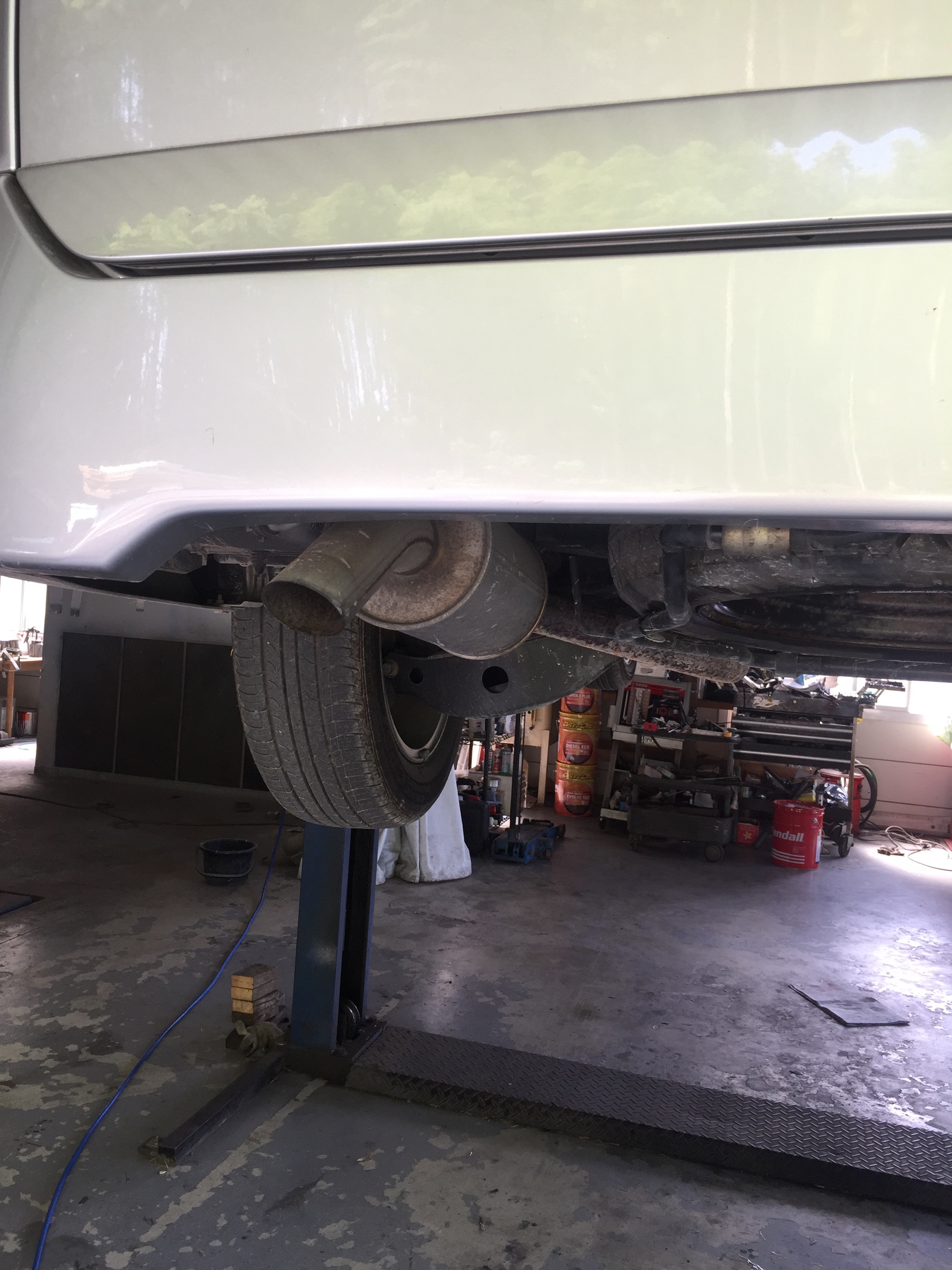 ノーマルマフラーの出口が下向きの為、マフラーカッターを現車合わせして取り付けてみました。